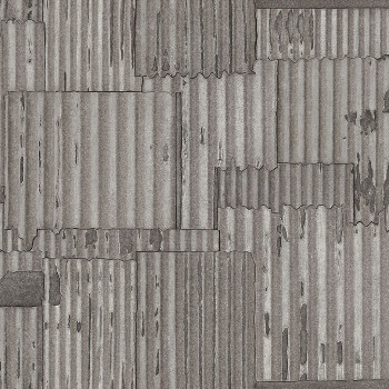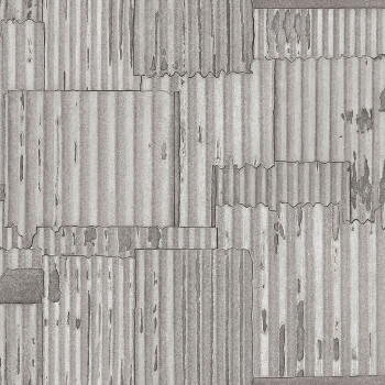 Šedostříbrná vliesová tapeta design vlnitý plech 347618, Matières - Metal, Origin