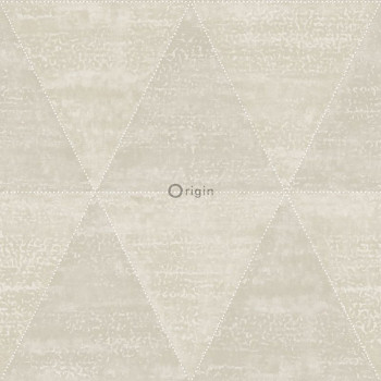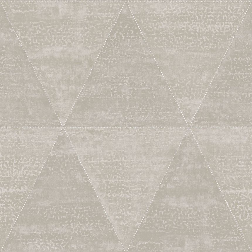 Vliesová tapeta na zeď šedobéžová metalická, hladká, imitace kovových trojúhelníků s nýty.
