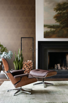 Vliesová tapeta hnědá metalická, imitace kovových trojúhelníků s nýty.