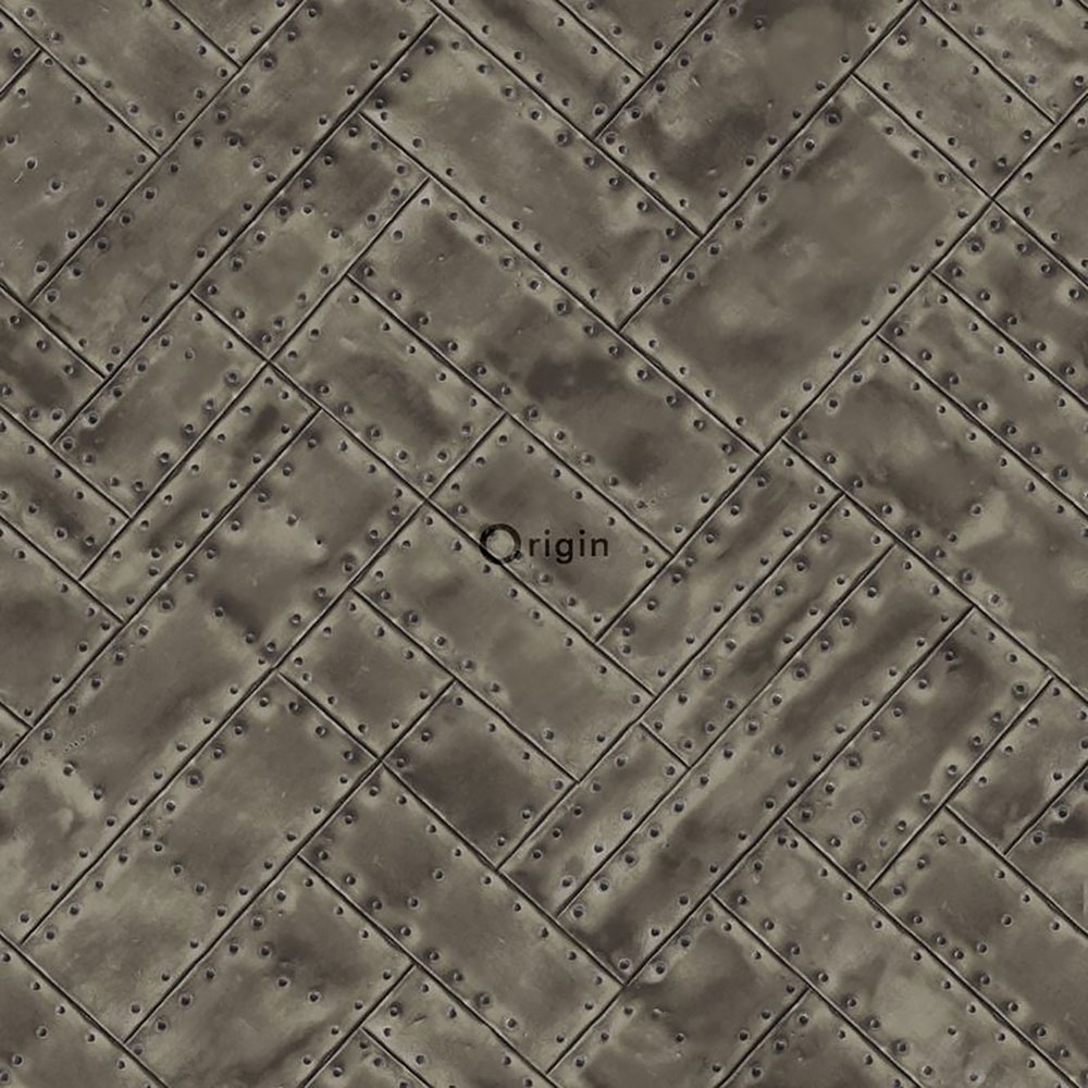 Vliesová tapeta, imitace kovově lesklých desek s nýty 337244, Matières - Metal, Origin