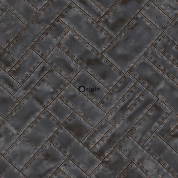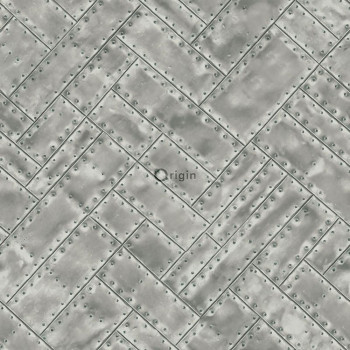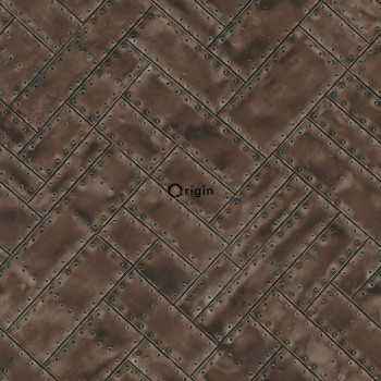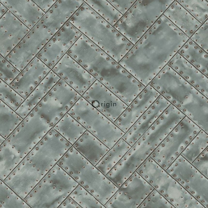 Vliesová tapeta, imitace zelených kovových desek s nýty 337242, Matières - Metal, Origin