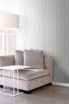 Metalická šedostříbrná vliesová tapeta na zeď, imitace dřeva, palubek 347551, Matières - Wood, Origin