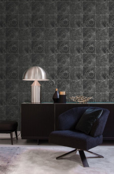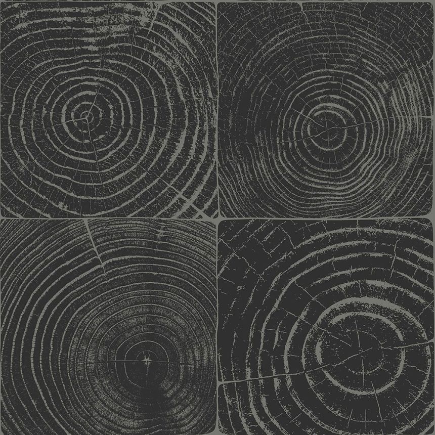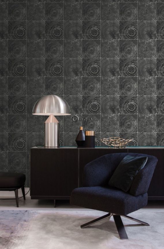 Černo-stříbrná vliesová tapeta, imitace dřeva s letokruhy 347544, Matières - Wood, Origin