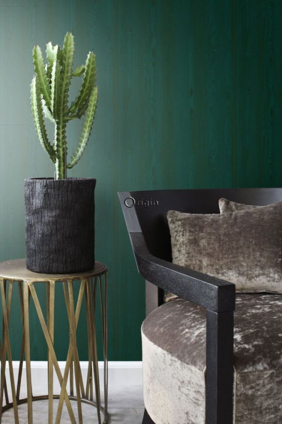 Vliesová tapeta na zeď zelená metalická, imitace dřeva 347535, Matières - Wood, Origin