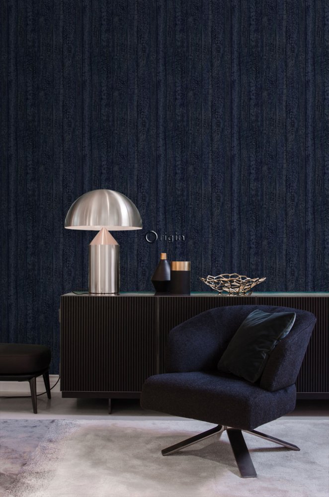 Tmavě modrá vliesová tapeta, imitace dřeva 347532, Matières - Wood, Origin