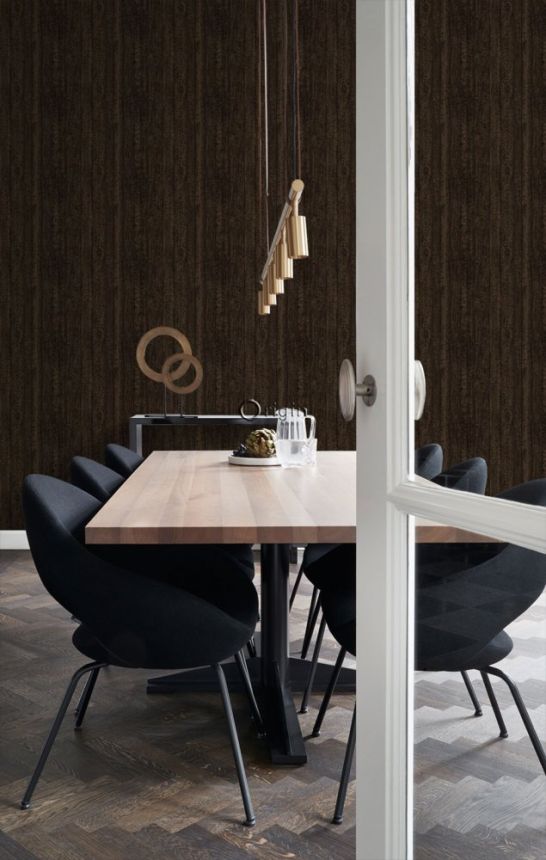Tmavě hnědá vliesová tapeta na zeď, vzor struktura dřeva.
