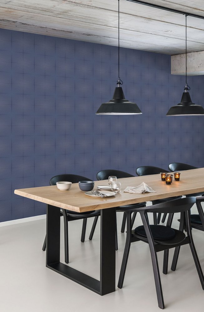 Vliesová tapeta s výraznou texturou v odstínech tmavě modré se stříbrnými třpytkami.