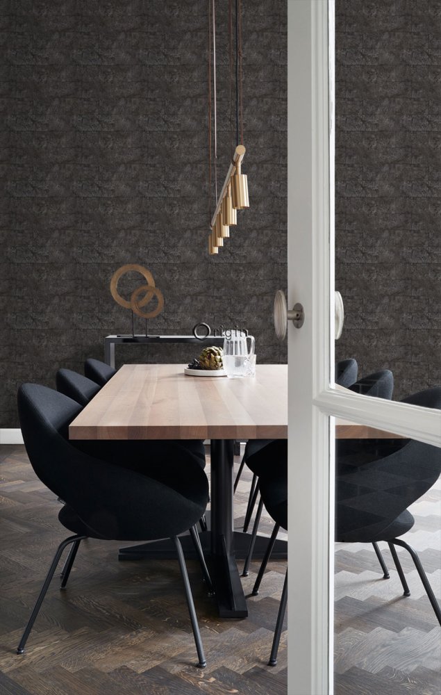 Černá vliesová tapeta, imitace kamenného obkladu.