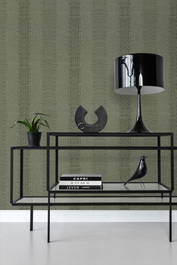 Khaki vliesová tapeta na zeď, imitace krokodýlí kůže 347773, Luxury Skins, Origin