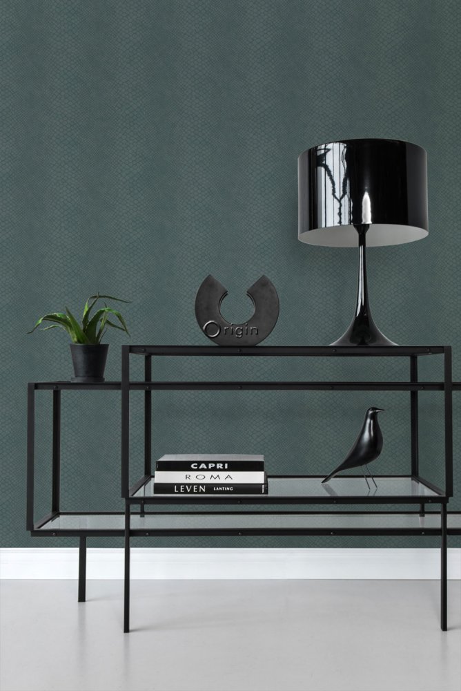 Šedomodrá vliesová tapeta, imitace hadí kůže 347770, Luxury Skins, Origin