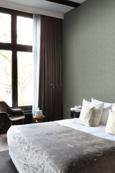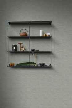 Vliesová tapeta na zeď šedozelená, imitace látky, jemná textura.