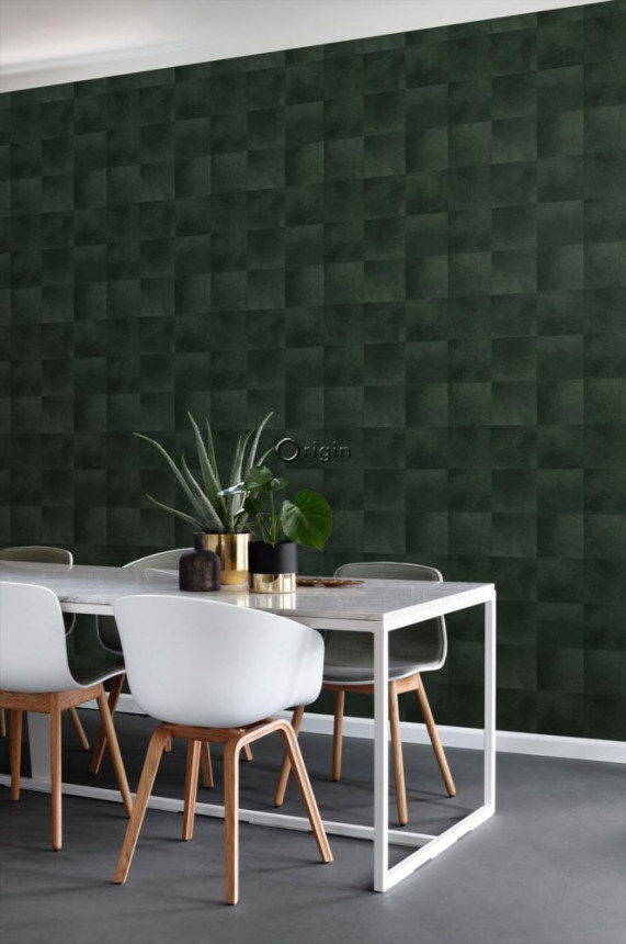 Vliesová tapeta na zeď šedozelená, imitace látky, jemná textura.
