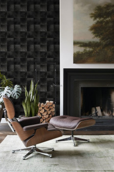 Vliesová tapeta černá, imitace kožešiny ve čtvercích.