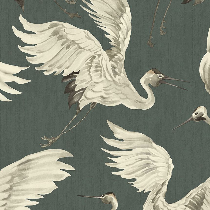 Zelená vliesová tapeta na zeď, letící ptáci 317355, Oasis, Eijffinger