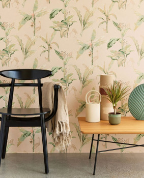 Béžová vliesová tapeta na zeď, palmové listy, ptáci, opičky 317344, Oasis, Eijffinger