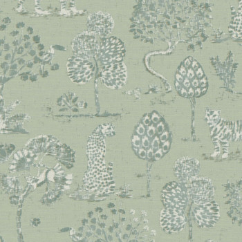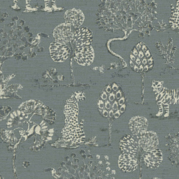 • Metalické tapety se zvířaty třpytící se mezi palmovými listy.
