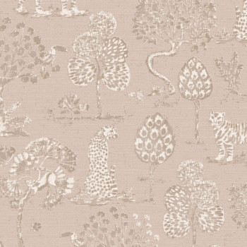 Růžová vliesová tapeta se stromy, tygry a leopardy 317312, Oasis, Eijffinger