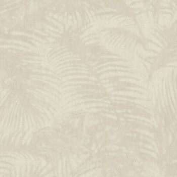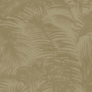 Vliesová tapeta na zeď s motivy tropických listů, odstíny hnědozelené / khaki. Tapeta má proužkovou texturu.