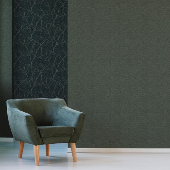 Vliesová žíhaná tapeta - struktura jemné, tmavě zelené textilie, s odlesky z růžového zlata