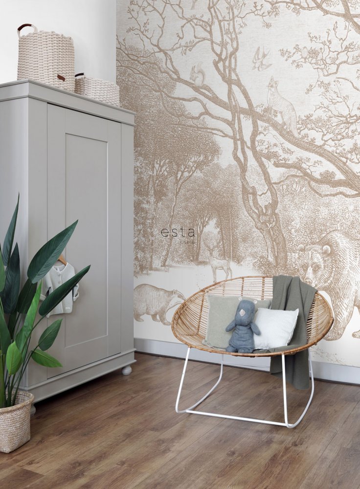 Forest Friends je kolekce dětských tapet na zeď od výrobce Esta, ve které se můžete těšit na hravá lesní zvířátka.