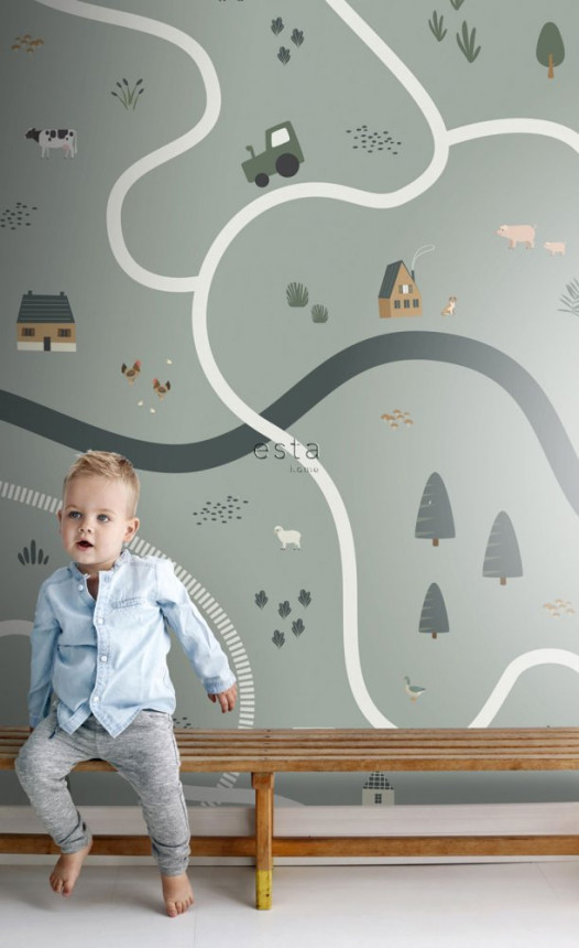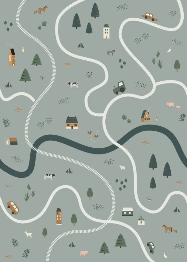 Vliesová obrazová tapeta Farma, silnice, traktory 159056, 200 x 279 cm, Forest Friends, Esta