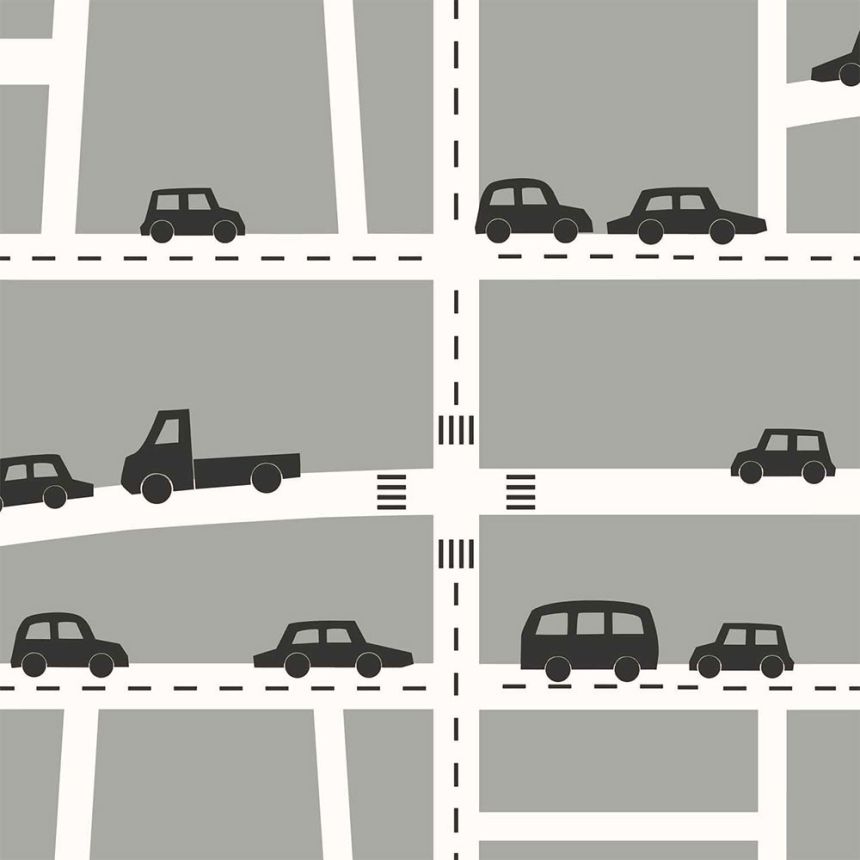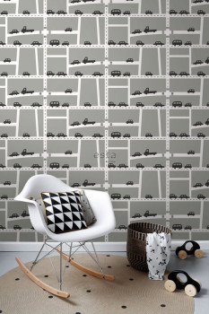 Vliesová tapeta na zeď šedá, tapeta pro kluky, auta, silnice.