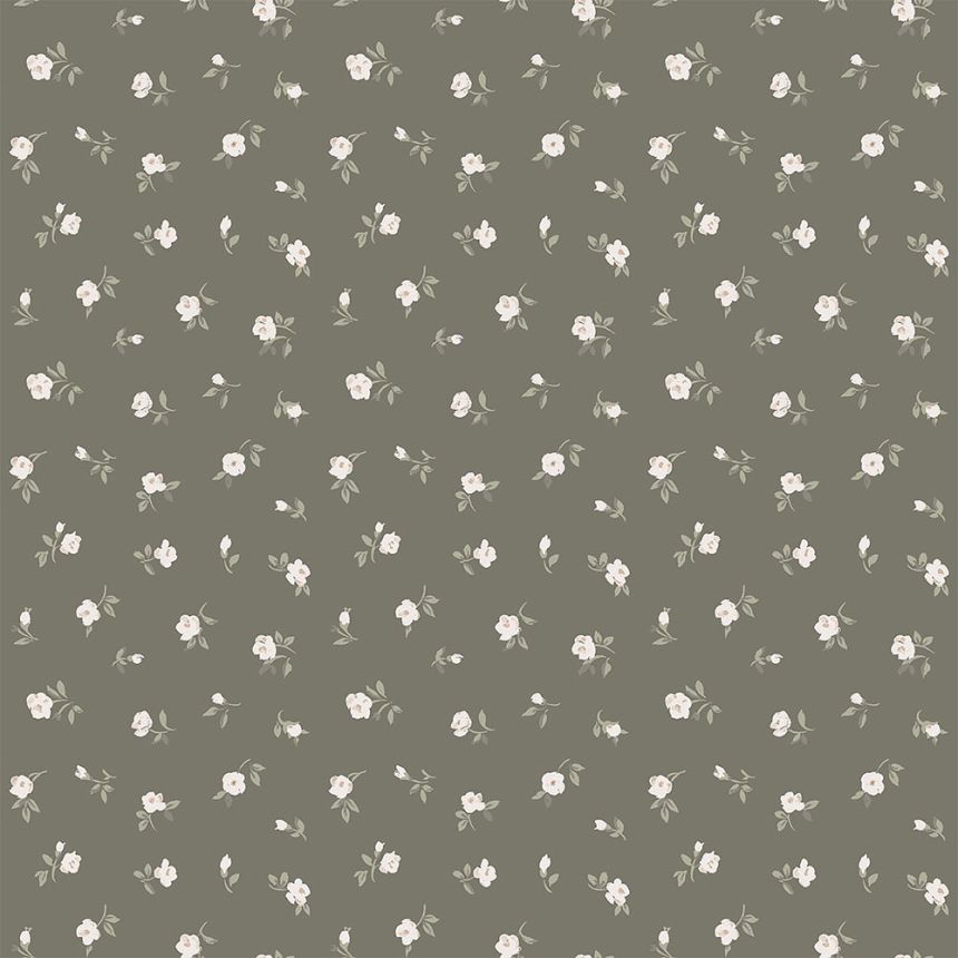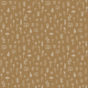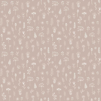 Starorůžová vliesová tapeta s bílým vzorem rostlin a květin.