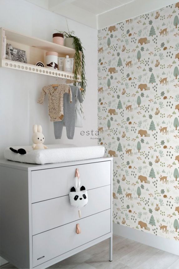 Forest Friends je kolekce dětských tapet na zeď od výrobce Esta, ve které se můžete těšit na hravá lesní zvířátka.