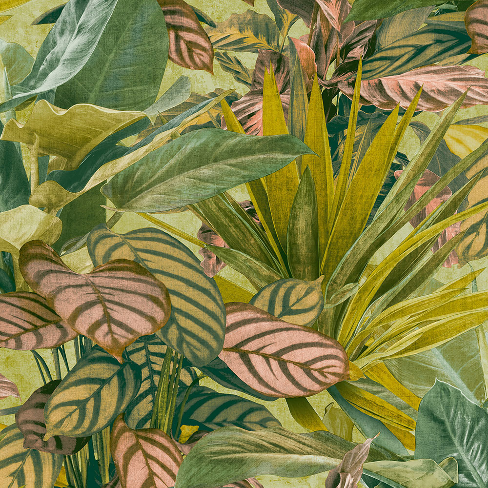Pokud jste milovník květin, tak této tapetě s motivem tropické rostliny kalatea rozhodně neodoláte. Tapeta se pyšní tropickým motivem a barevnými listy. Vzor je vytištěn na struktuře látky, která ještě více zvýrazňuje žilky v listech.