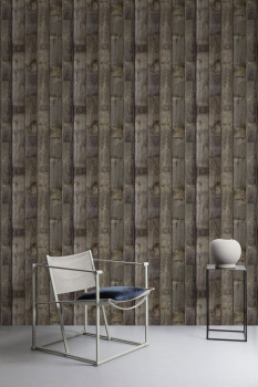 Hnědá vliesová tapeta na zeď, imitace dřeva, palubek, WL1401, Wanderlust, Grandeco
