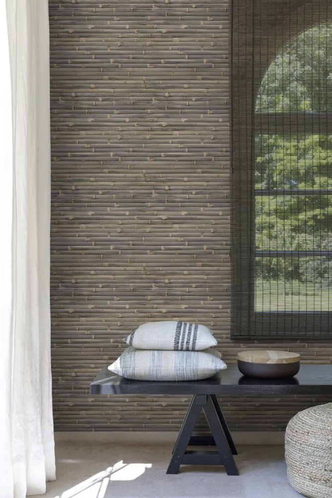 Hnědá vliesová tapeta na zeď, imitace bambusu, WL1103, Wanderlust, Grandeco