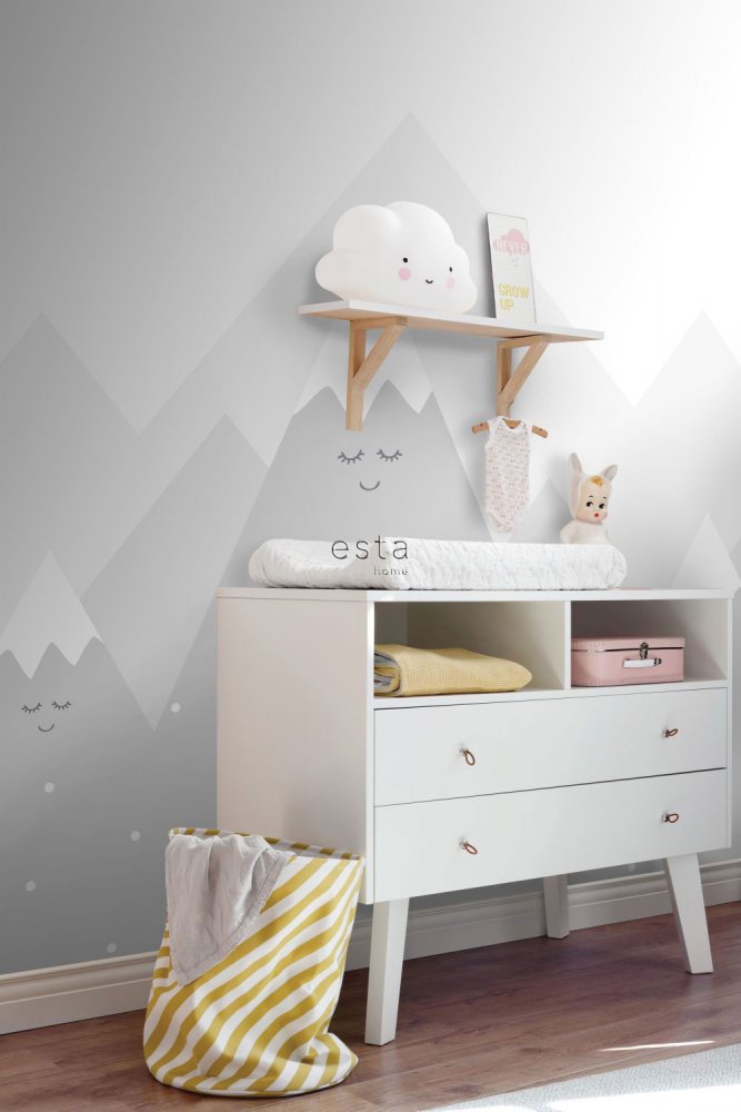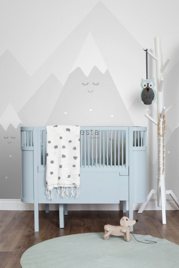 Vliesová obrazová tapeta na zeď, tapeta pro nejmenší děti - šedé hory.