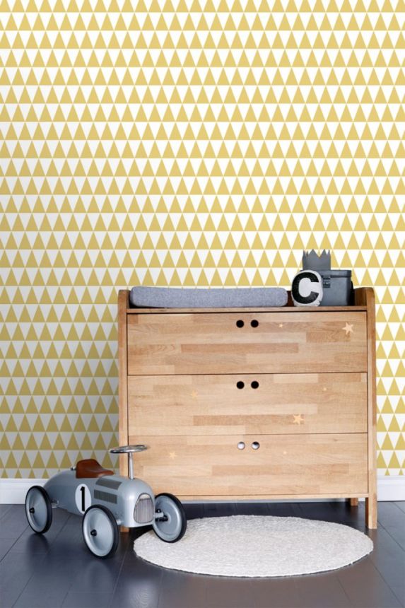 Vliesová tapeta s okrovými a bílými trojúhelníky 128863, Little Bandits, Esta