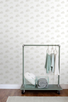 Vliesová tapeta bílá s šedými mráčky 138945, Little Bandits, Esta