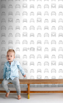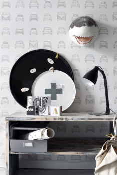 Bílá vliesová tapeta na zeď, černá kreslená auta.
