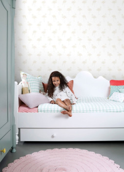 Vliesová tapeta bílá s metalickým vzorem plameňáků 138917, Little Bandits, Esta