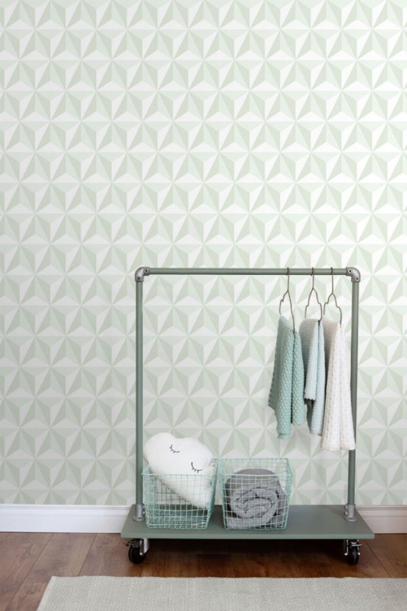 Zeleno-bílá vliesová tapeta na zeď, 3D hvězdicový vzor 138913, Little Bandits, Esta