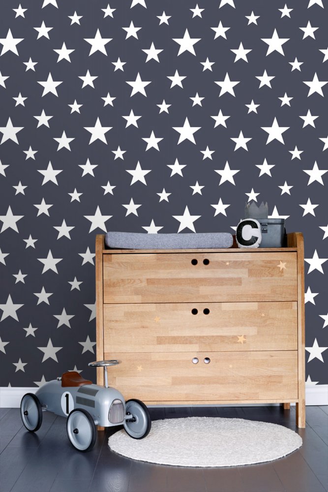 Tmavě modrá vliesová tapeta na zeď, vzor bílé hvězdy.