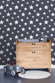 Tmavě modrá vliesová tapeta s bílými hvězdami 138933, Little Bandits, Esta