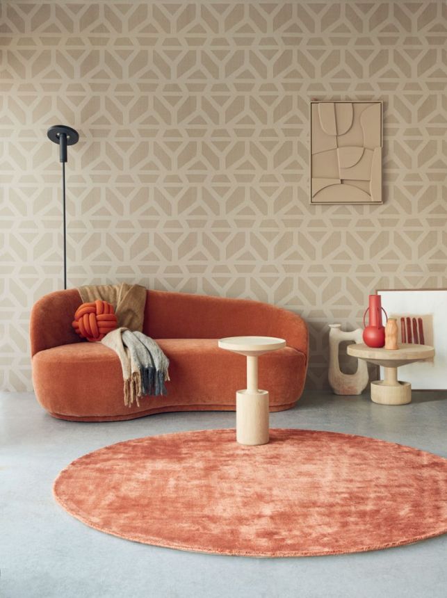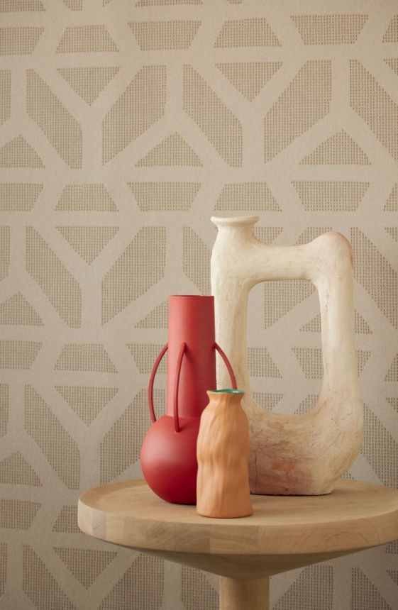 Světle béžová vliesová tapeta na zeď s geometrickým vzorem.