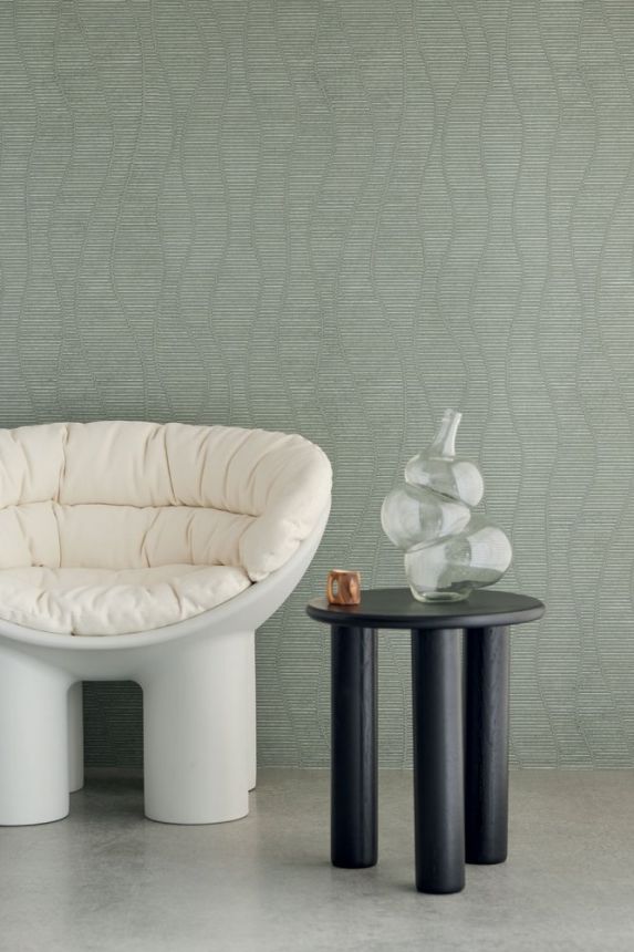 Luxusní vliesová tapeta na zeď s geometrickým vzorem ve světle zelených odstínech s perlovým leskem
