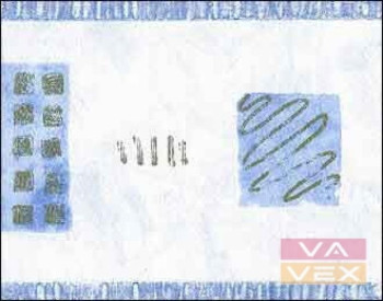 Papírová bordura s geometrickým vzorem v modré a stříbrné barvě.