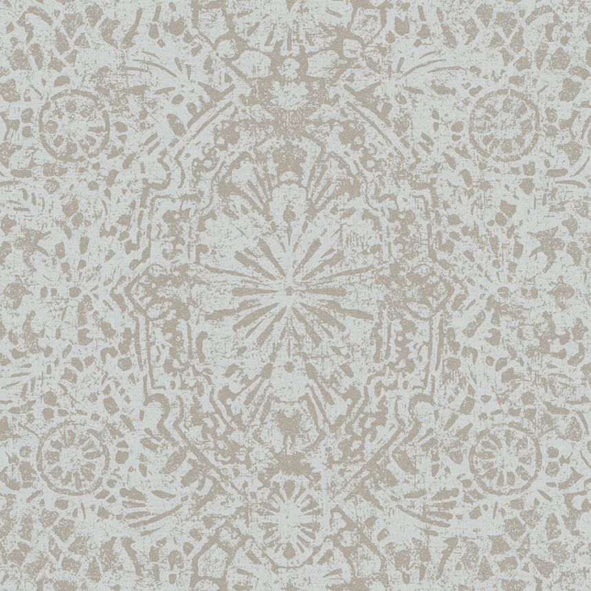 Vliesová tapeta na zeď, světlý modrozelený podklad, zlatý damaškový vzor.