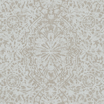 Světlá modro-zelená vliesová tapeta na zeď, zlatý damaškový vzor EE3102, Elementum, Grandeco