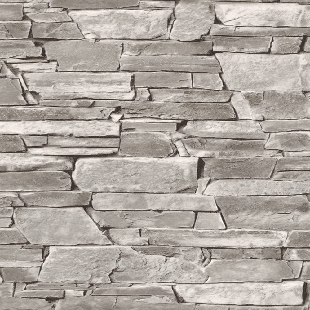 Kámen zdokonalí celkový design vašeho interiéru a vytvoří velmi příjemnou atmosféru. Dekor strukturované šedé kamenné stěny s černými spárami.
