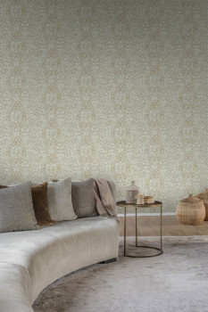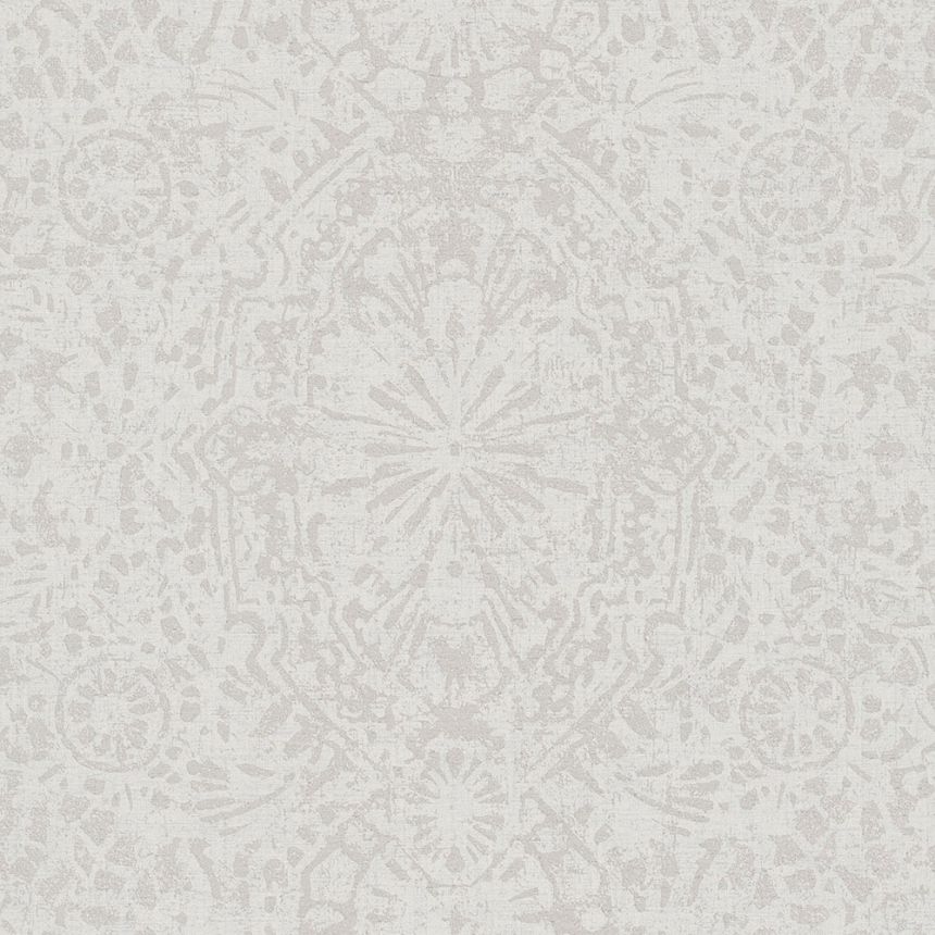 Vliesová tapeta bílá, metalický růžový damaškový vzor.