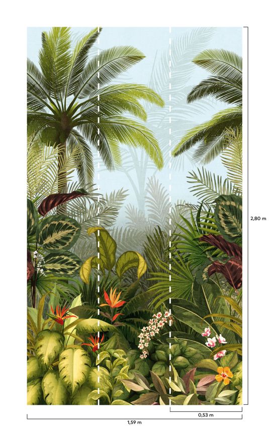 Vliesová obrazová tapeta na zeď, motiv palem a tropických listů.