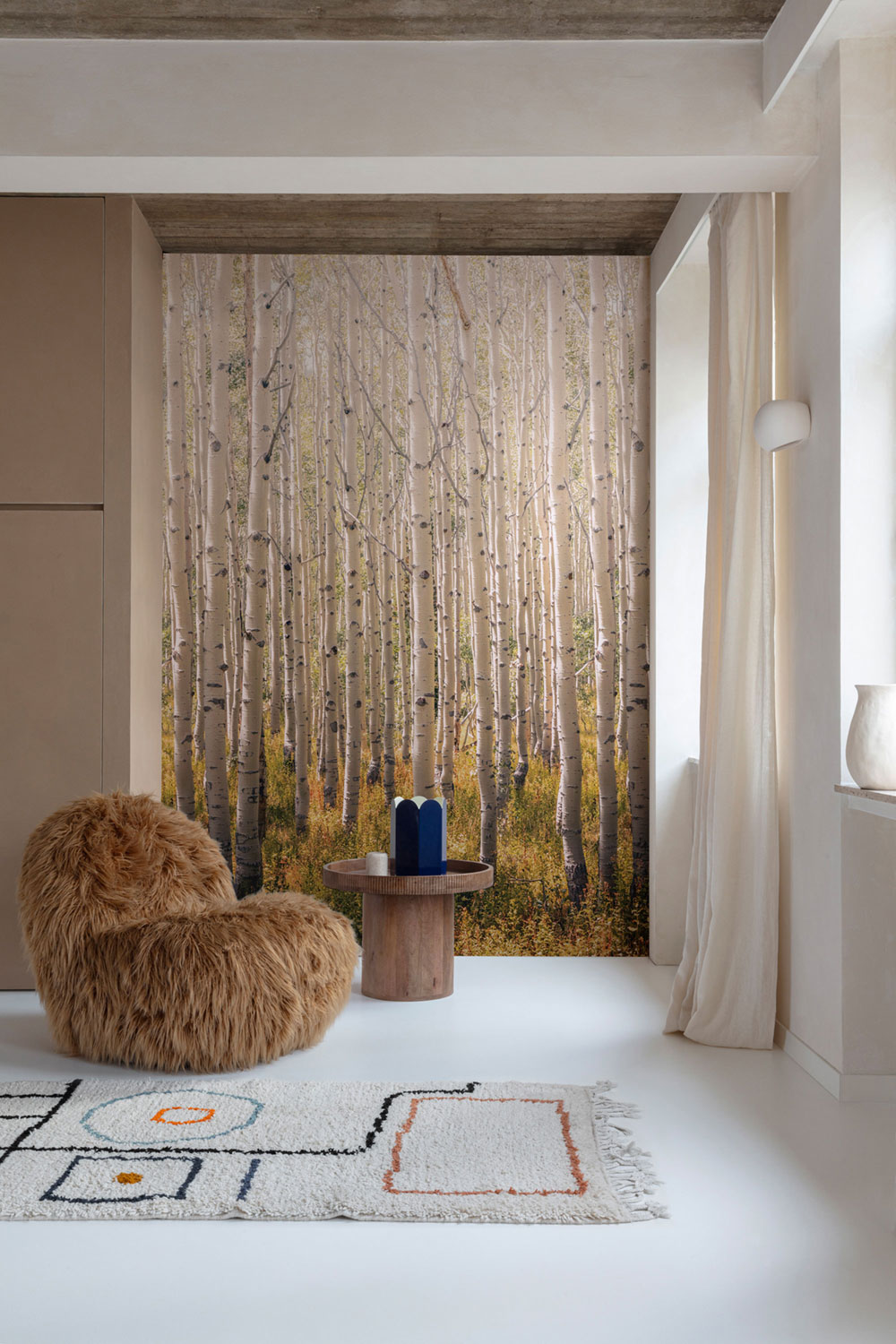 Vliesová obrazová tapeta na zeď - přeneste klidnou atmosféru březového háje do vašeho interiéru.