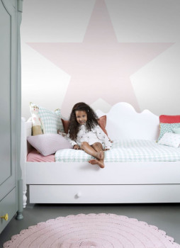 Vliesová obrazová tapeta na zeď, růžová hvězda na bílém podkladu.