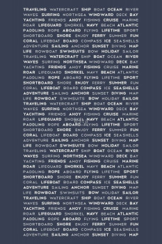 Tmavě modrá vliesová obrazová tapeta s nápisy s námořnickou tématikou.